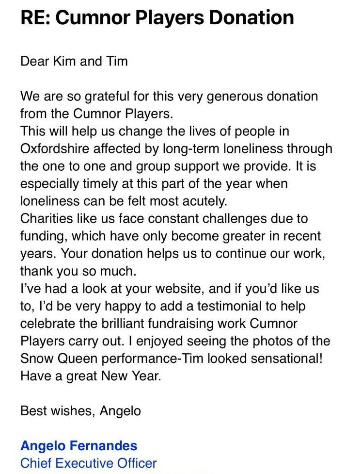 Firstly, please let me congratulate you on the most fabulous show. It was a real treat to be able to attend with colleagues and have a really good laugh during what have been trying times. As someone involved heavily in amateur dramatics myself, I could appreciate all of the hard work and dedication that went into the production. You must feel incredibly proud to have sold so well and had such a fantastic reaction.